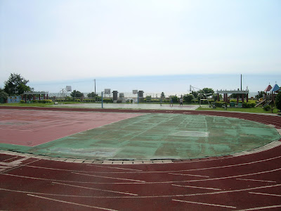 走在海堤上,不久就遇到也在海堤邊的新埔國小。因為是暑假,學校裡只有幾個小朋友在打籃球。我想新埔國小的學生對於海洋應該是不陌生的,因為整座學校,不論是從操場、籃球場、司令台,還是從教室,大多數的角落只要抬頭一看就可以看到無際的大海。